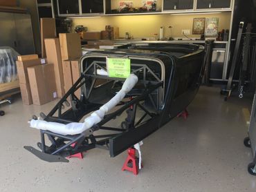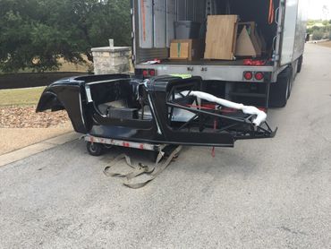08/09/18 Stewart Transport showed up as promised. Because of my narrow driveway, the kit was off-loaded at the top of the drive. Driver Jim was professional and through, hauling every box and setting the chassis onto my jack stands. All of my delivery anxiety was lifted, the kit set up in my shop. Now the fun begins…..